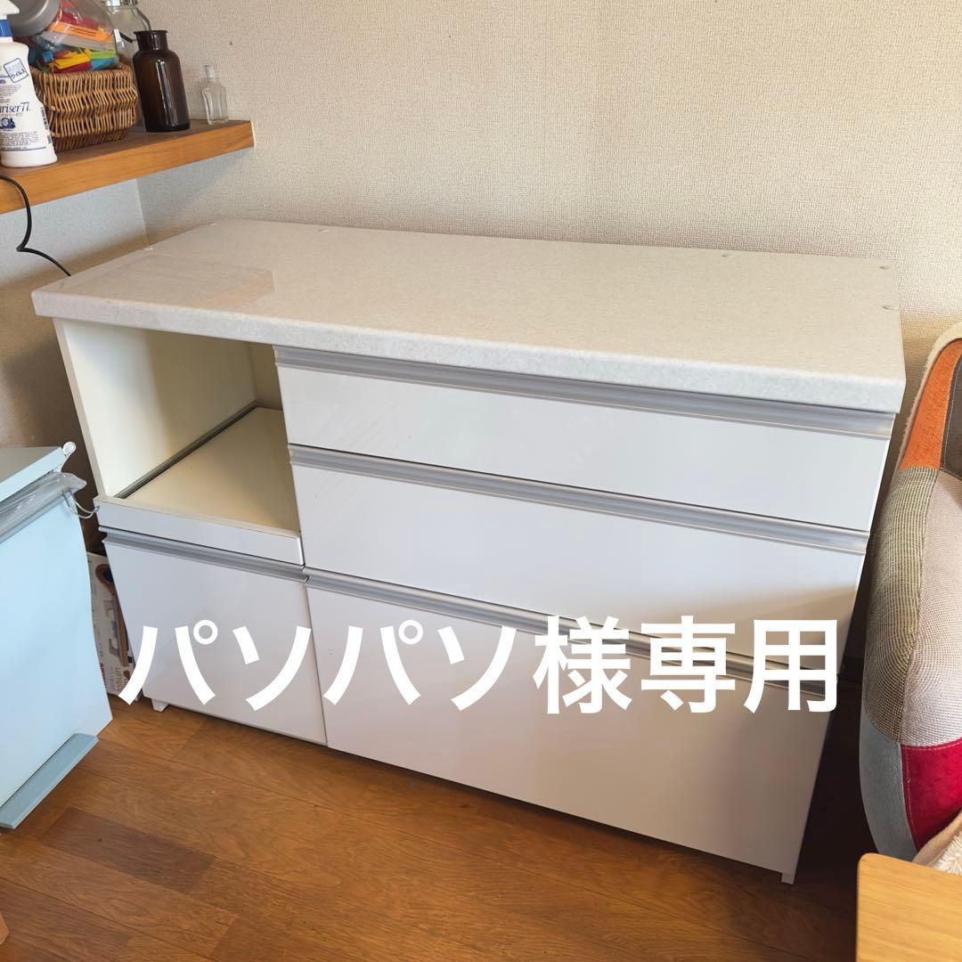 大川家具のキッチンカウンターです。備え付け家具のようなキッチンカウンターキッチンとリビング、ダイニングを違和感なく繋げます。見せたくない調理中の手元も隠せるおしゃれなキッチンカウンターです。カウンターの前面には携帯電話やタブレットなどの充電ができる便利なコンセント付き。天板トップはポストフォーム形状のステンレストップ天板を採用。耐熱、耐水、汚れも簡単に落とせる素材です。引き出しは奥の物までとりやすいフルオープンレールを採用してます。お手持ちのダストボックスの収納も可能です。2024年に購入。購入から日が浅いため全体的に綺麗な状態です。※引き出しの内側に1箇所傷があります。フックを引っ掛けていたとき出来たものです。目立つ場所ではありませんが写真12枚目を確認のうえ了承頂ける方のみ御購入ください。- サイズ: 120cm x 90cm x 40cm- カラー: ライトブラウン- デザイン: 洗練されたデザイン- スタイル: モダンご覧いただきありがとうございます。。ホワイト 食器棚 ガラス扉付き。H21K69 北海道民芸家具 食器棚 HM160K。【meme 3/10引渡し】キッチン収納 シルバー スチール製 引き出し式。LIVING HOUSE ルシード 120オープンダイニングボード ナチュラル。LITENStaD 食器棚 ガラスキャビネット 60cm。SNT1415 古賀家具工業 キッチンカウンター セイント 140 カップボード。IDC大塚家具 綾野製作所 食器棚 キッチンカウンター 幅120cm。A2D16■松本民芸家具 カップボード 食器棚。モモナチュラル 食器棚。enfant アンファン 食器棚 カントリー。LOWYA 耐震ラッチ付き食器棚 120cm。無印 ステンレスユニットシェルフ 引き戸。木製食器棚 ガラス扉付き 高180cm。大阪引取限定 FRIA-90KB-WH 食器棚 ホワイトお店の情報