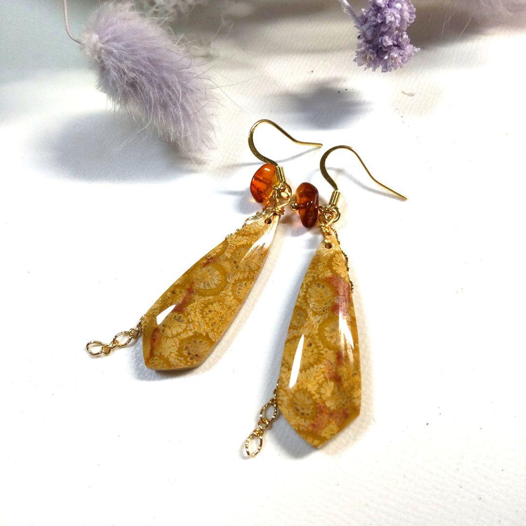 天然石花&マザーオブパールピアス