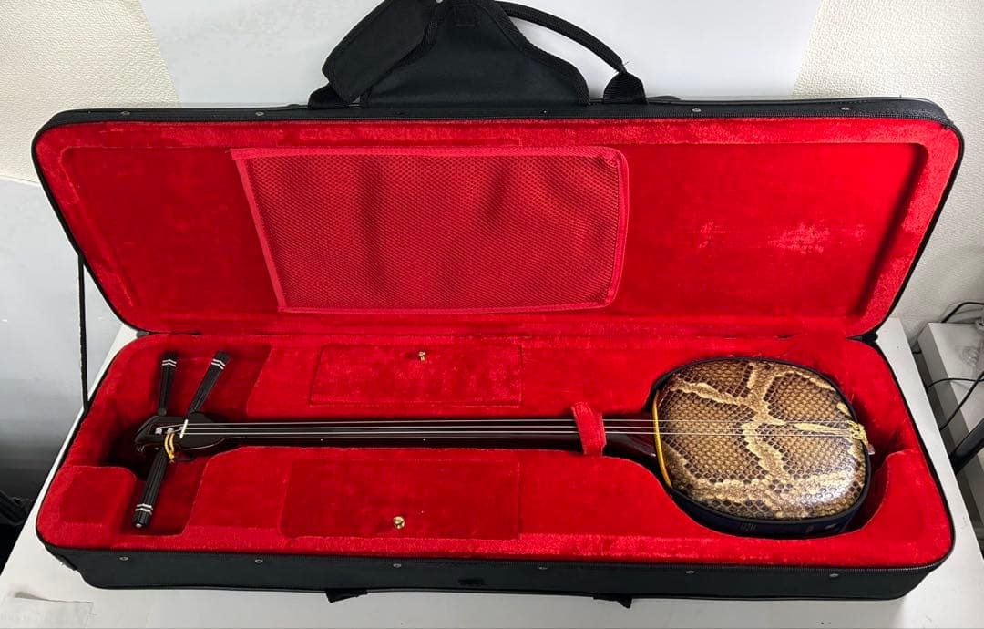 【美品】三線 沖縄 収納袋 付属品 初心者 人工皮 蛇革 蛇皮 和楽器